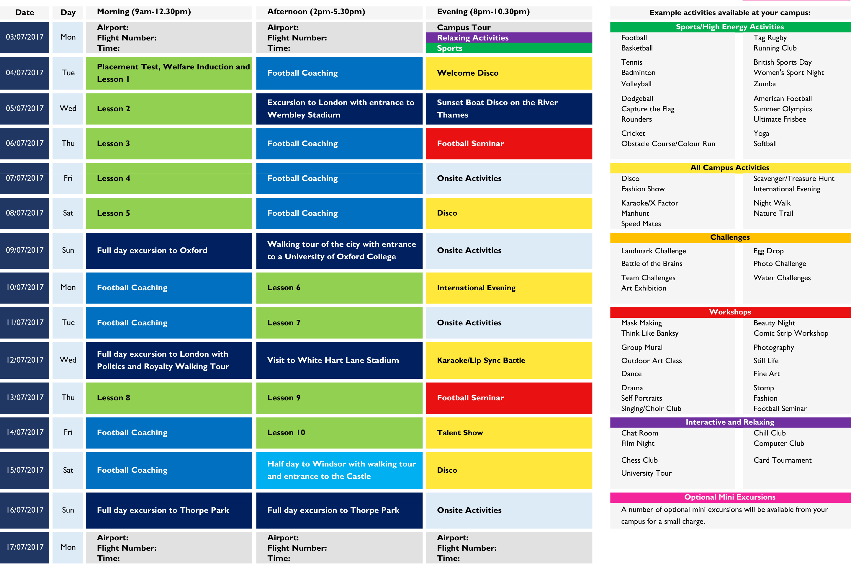 Tottenham Hotspur - это лучший английский клуб Премьер-Лиги. Мы рады объединиться с футбольным клубом Tottenham Hotspur и предложить вам двухнедельный курс футбола на базе языкового лагеря. Студенты будут развивать навыки, отрабатывать приемы и играть в футбол раз в два дня в знаменитом университете Royal Holloway под командованием профессиональных тренеров Tottenham Hotspur.